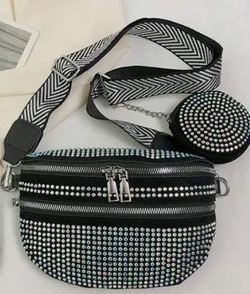 Una cartera que redefine el concepto de moda urbana con su diseño moderno y audaz. Fabricado en cuero negro con aplicaciones metálicas plateadas, combina elegancia y carácter.