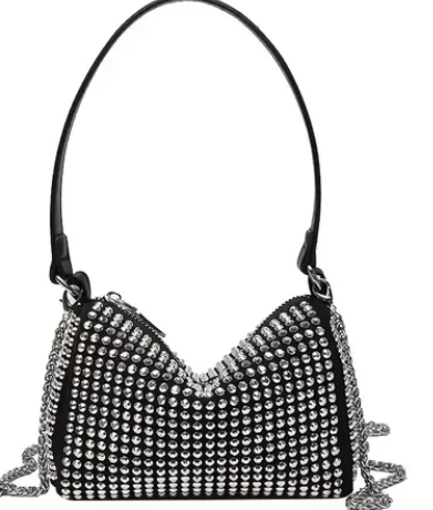 Las carteras presentan dos bolsos con diseño geométrico y acabado metálico, ideales para quienes buscan destacar con un estilo moderno y audaz.