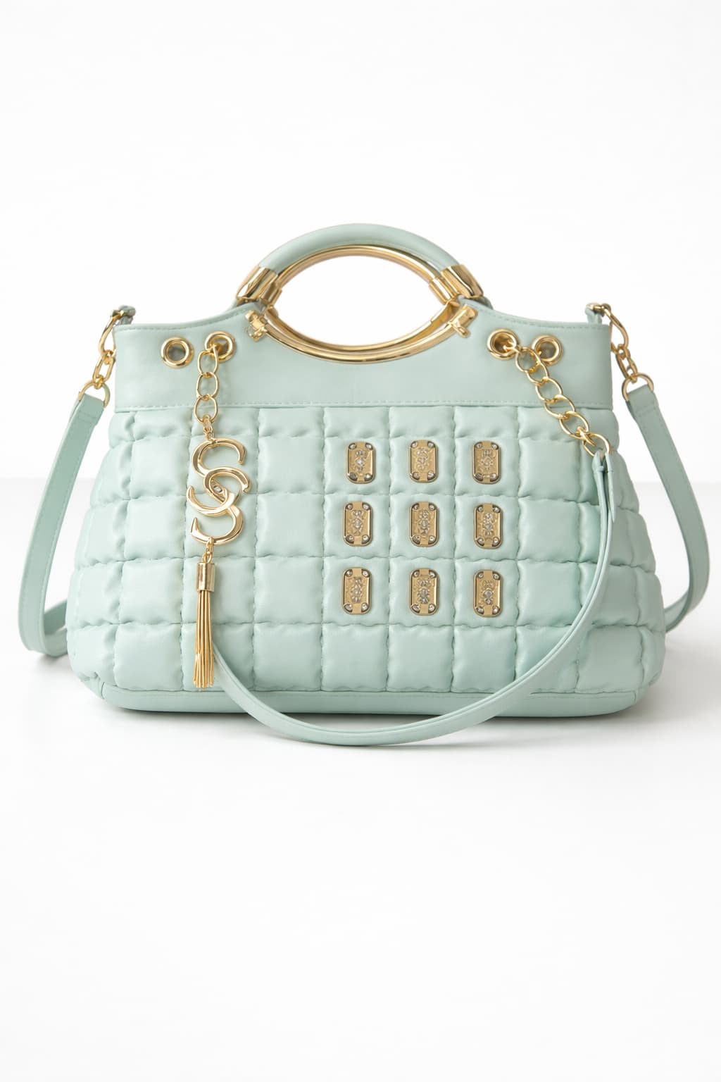 Bolsos modernos de acabado acolchado en tono verde menta y rosado con detalles dorados que aportan un toque sofisticado.