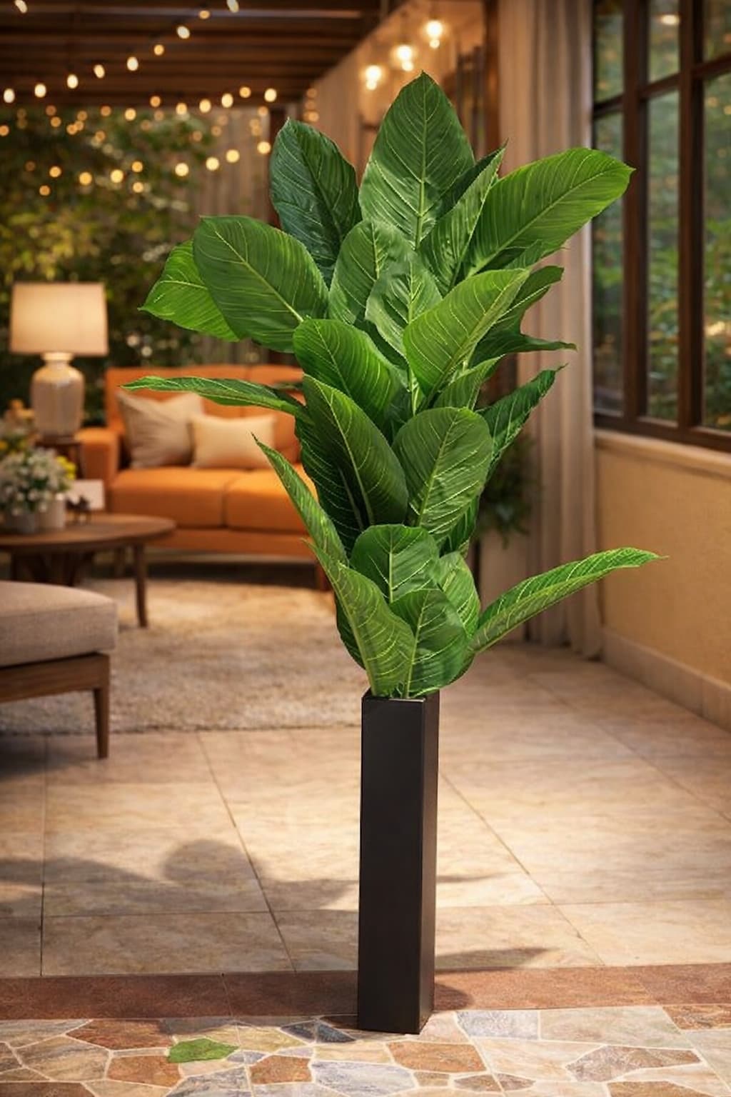 Esta elegante palmera artificial aporta frescura y vitalidad a cualquier espacio interior.